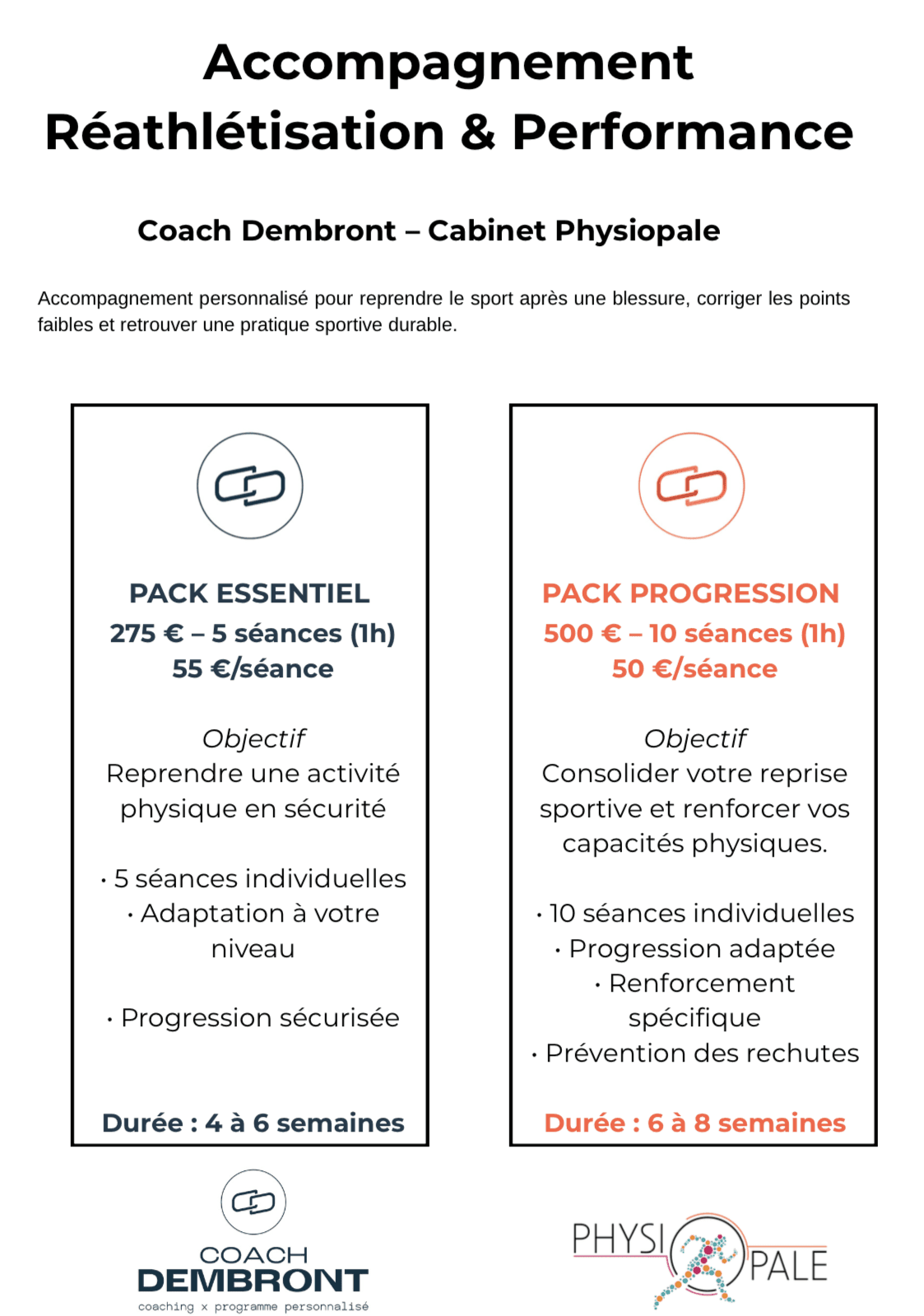 Accompagnement personnalisé pour reprendre le sport après une blessure, corriger les points faibles et retrouver une pratique sportive durable.